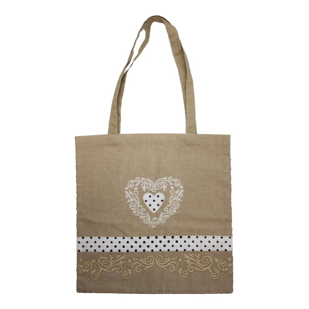 Látková béžová taška s motívom srdca je skvelý pomocník pri nákupoch. Navyše je taška ekologická a nemusia sa tak stále kupovať jednorazové tašky.
