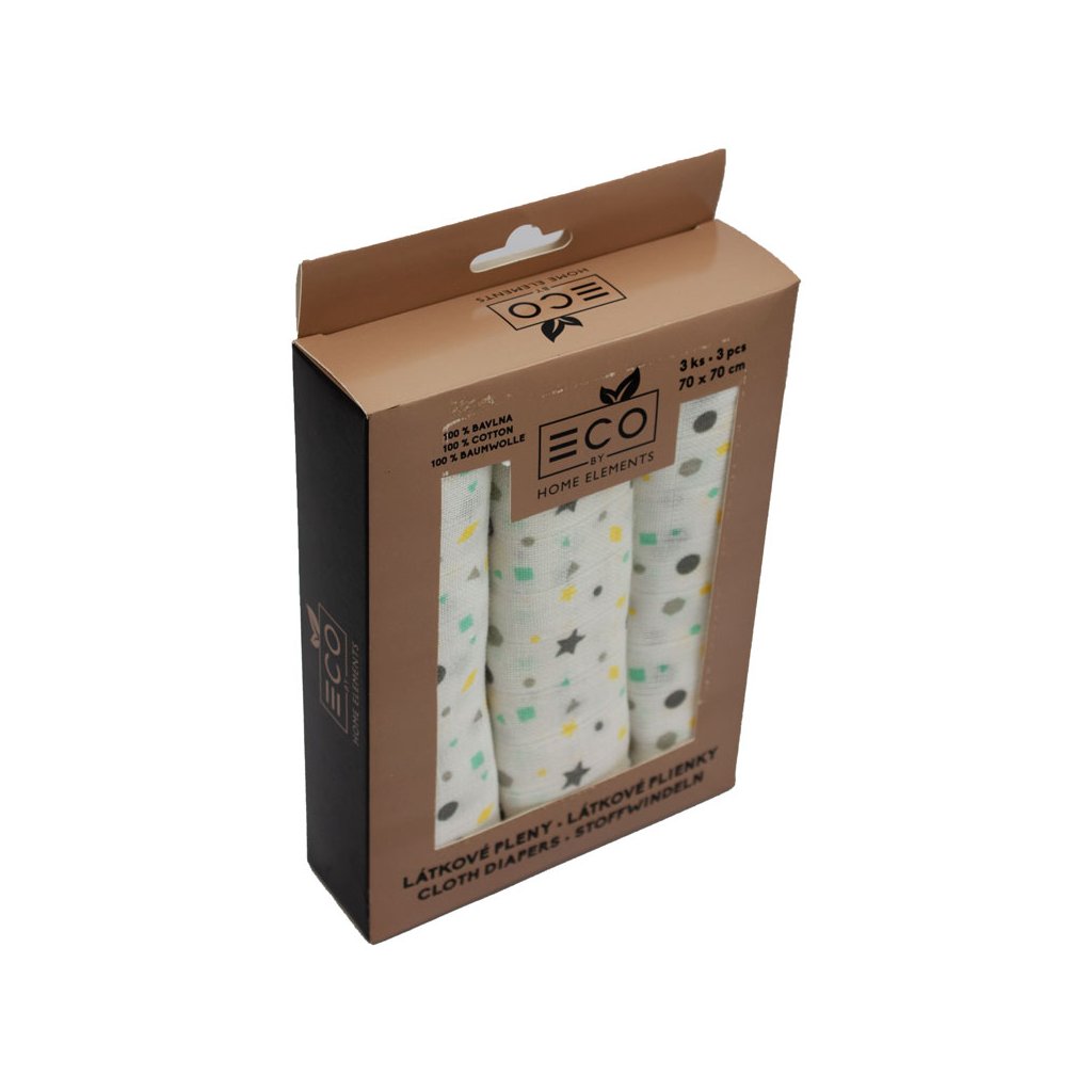 HOME ELEMENTS Látkové plienky 70x70 cm, sada 3 ks, hviezdičky