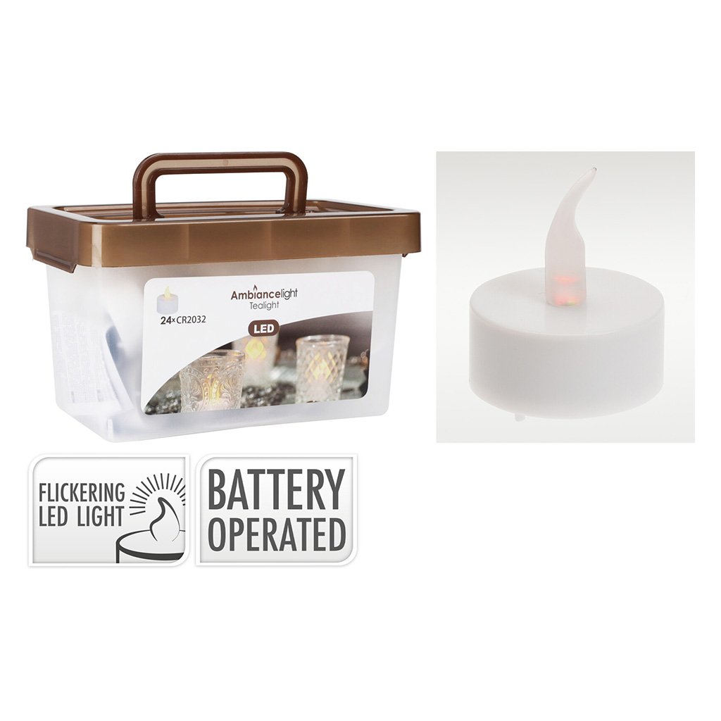 LED čajové sviečky v praktickej plastovej krabičke sú ideálnou voľbou na vytvorenie príjemnej atmosféry bez rizika otvoreného ohňa. V balení nájdete 24 kusov sviečok, každá s jemným blikajúcim efektom, ktorý napodobňuje svetlo skutočného plamienka. Sú vhodné na dekorácie, lampáše, svietniky aj vianočné aranžmány a vďaka napájaniu na batérie ich môžete umiestniť kamkoľvek.