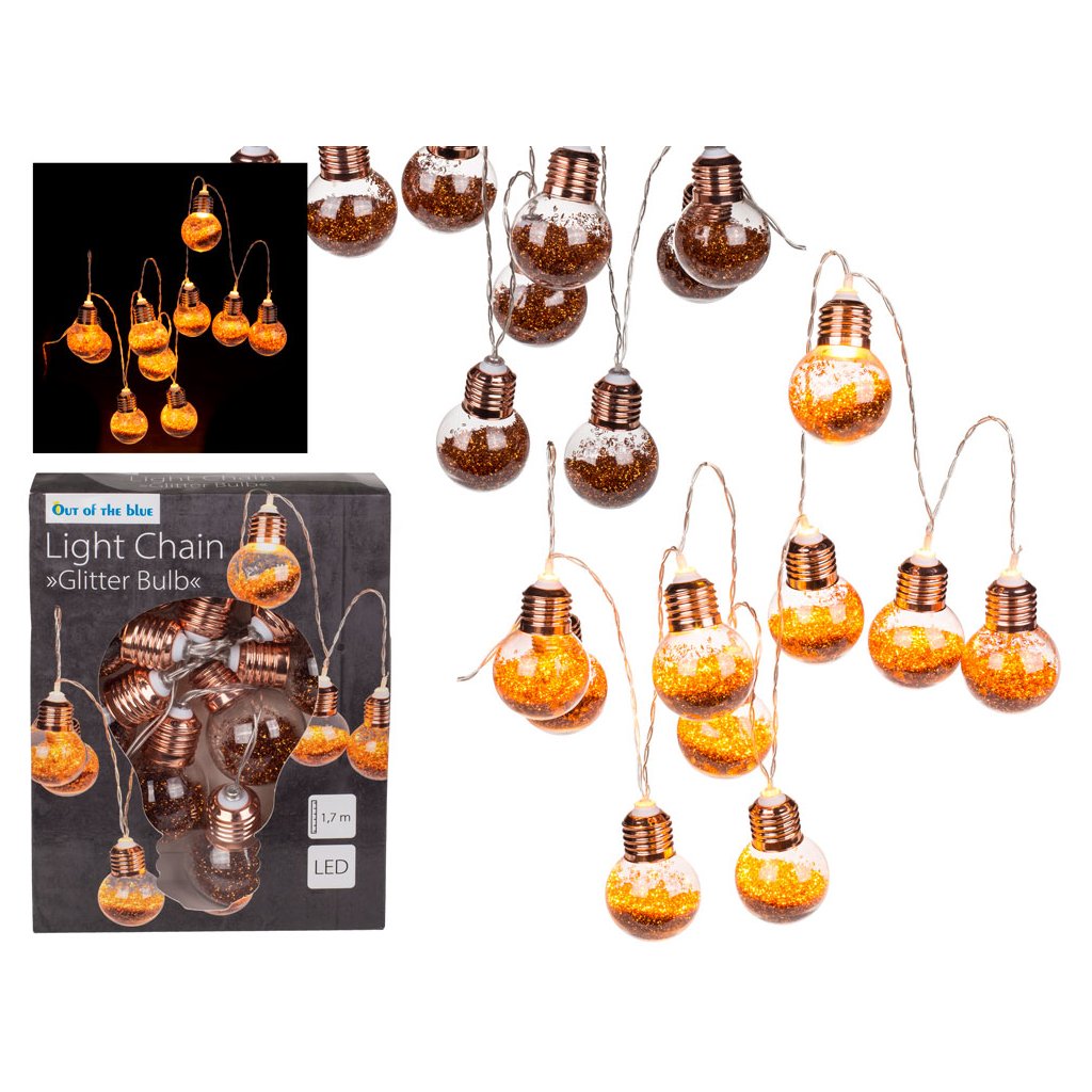 Svetelná reťaz LED s 10 žiarovkami naplnenými zlatými trblietkami.