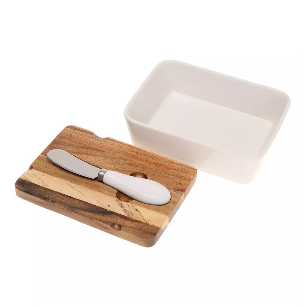 Uchovávajte maslo aj syr elegantne a hygienicky s dizajnovou maselničkou Klausberg. Táto štýlová dóza je vyrobená z kvalitnej keramiky a je vybavená vekom z prírodného akáciového dreva, ktoré pomáha zachovať čerstvosť potravín. Súčasťou súpravy je aj maslový nožík, vďaka ktorému bude každé servírovanie potešením.