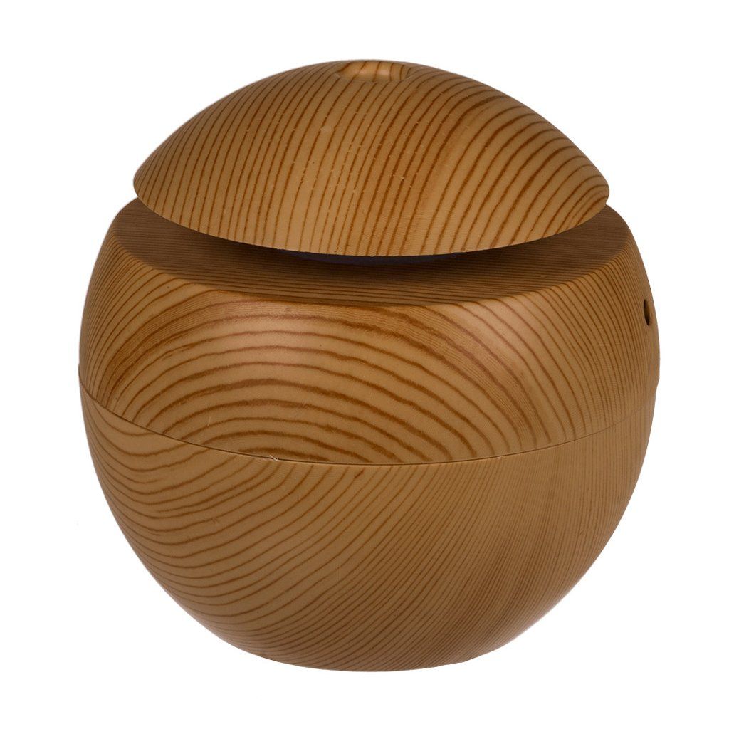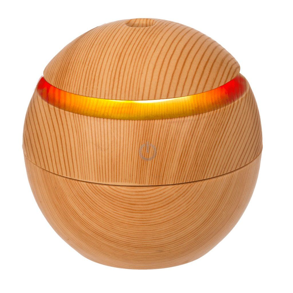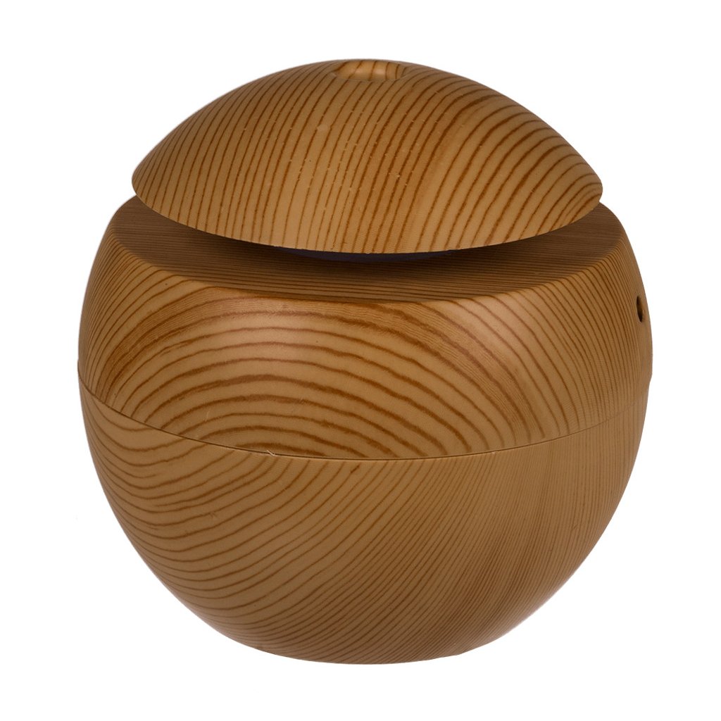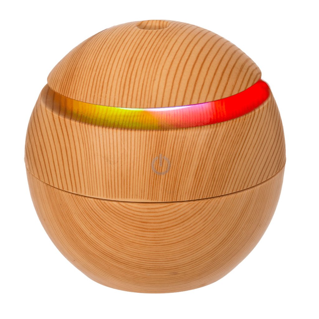 Elegantný mini zvlhčovač vzduchu, difuzér v jemnom drevenom dekore a guľovom tvare krásne prevonia váš domov a stane sa jeho krásnym doplnkom.