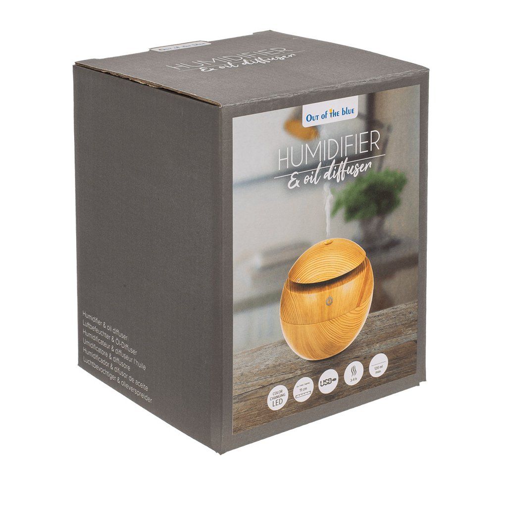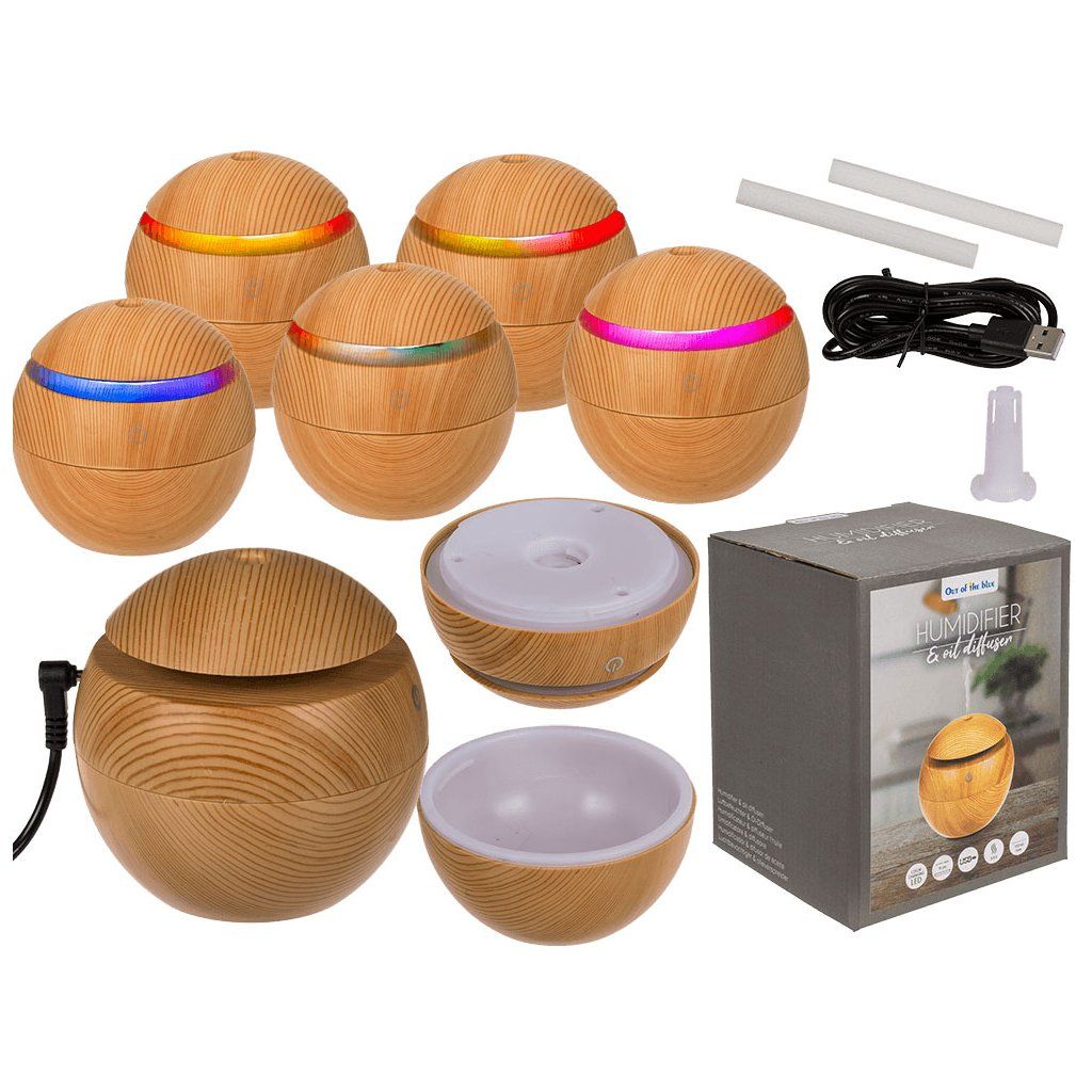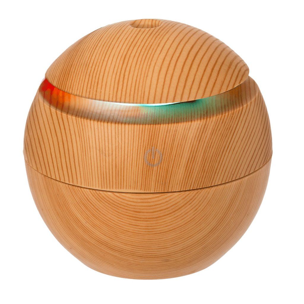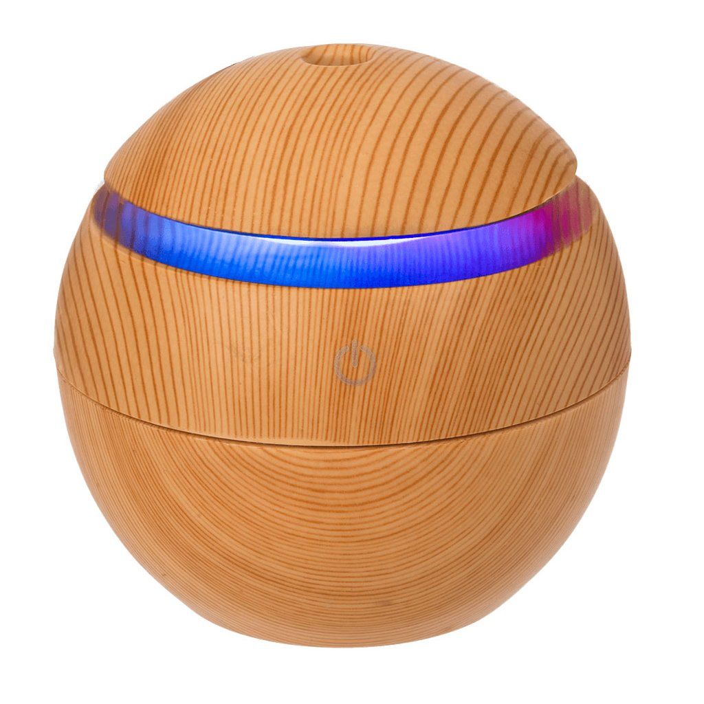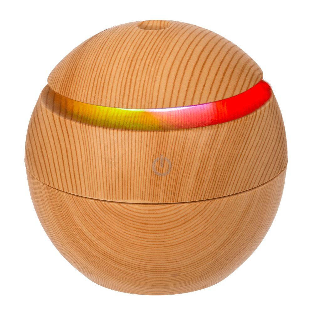 Elegantný mini zvlhčovač vzduchu, difuzér v jemnom drevenom dekore a guľovom tvare krásne prevonia váš domov a stane sa jeho krásnym doplnkom.
