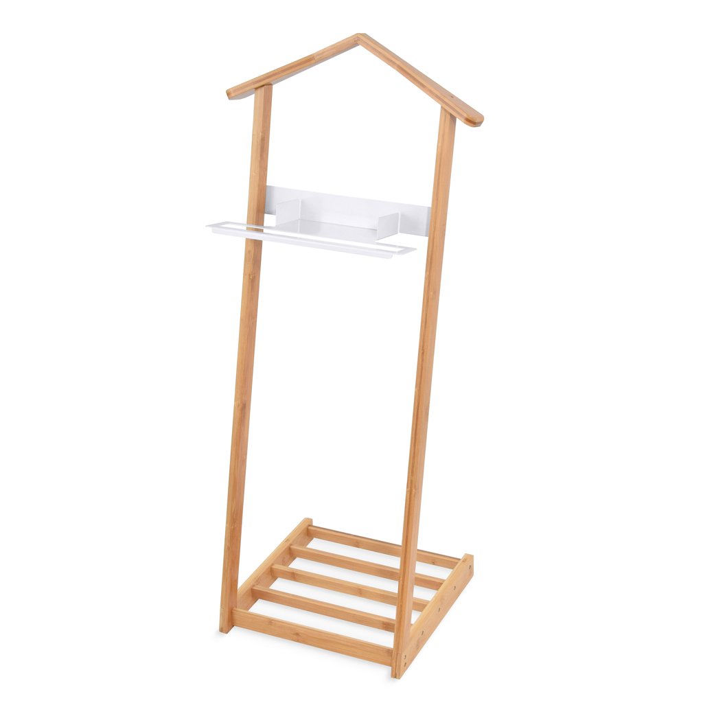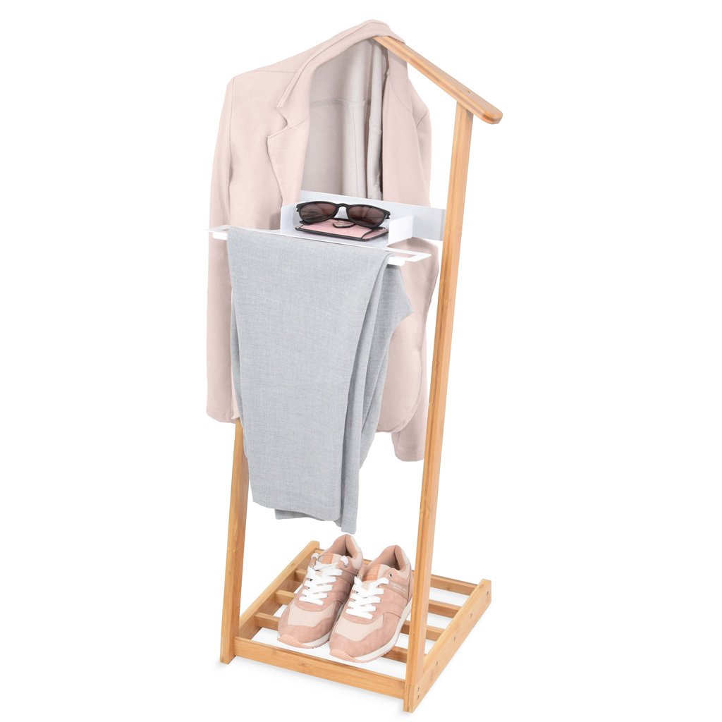 Němý sluha nabízí dostatek prostoru nejen pro odložení oděvů, ale díky praktické poličce i na drobnosti, jako třeba hodinky, brýle apod. Výběr materiálů jako je přírodní ale odolný bambus a pevný kov, nenechá nic náhodě. Němý sluha je zkrátka skvělým pomocníkem do každé ložnice či šatny.