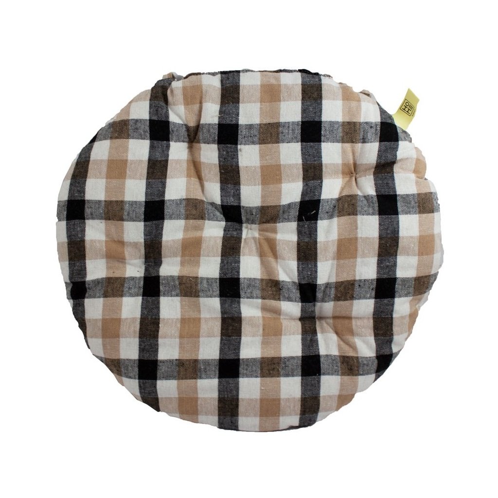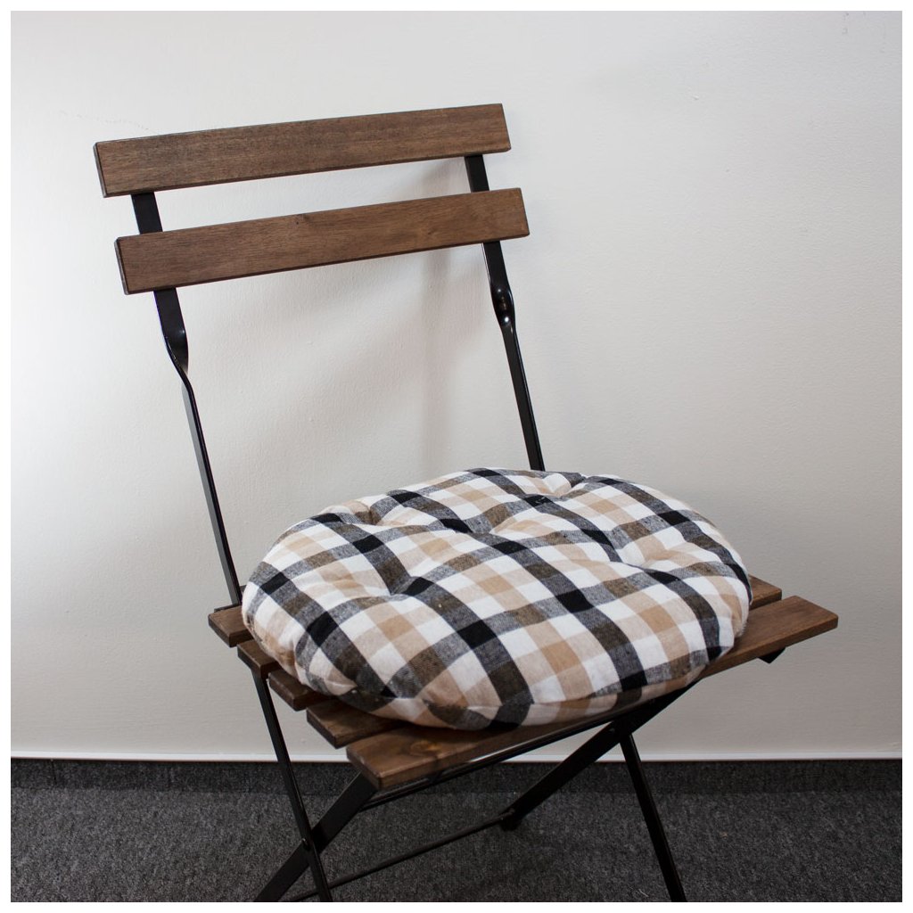 Okrúhly prešívaný 5 cm vysoký podsedák je zaujímavý svojim tvarom a poťahom v béžovo-čiernej kocke. Poslúži pre pohodlné sedenie na stoličke, na zemi, alebo napríklad ako dekoratívny vankúšik.