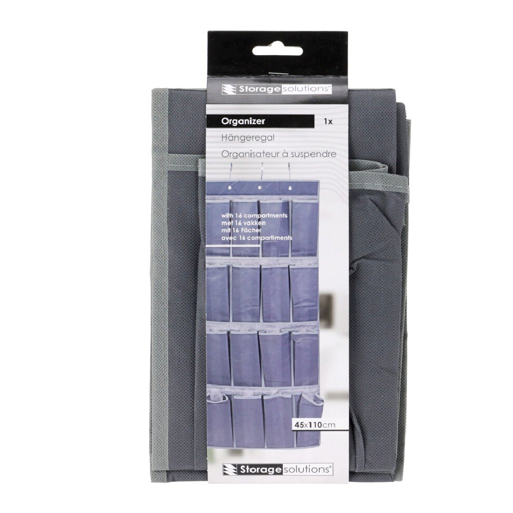 Praktický závesný organizér so 16 priehradkami je ideálny na uskladnenie topánok alebo drobných predmetov. Organizér sa jednoducho zavesí pomocou 3 kovových háčikov a je vhodný aj na kempovanie alebo do karavanu.