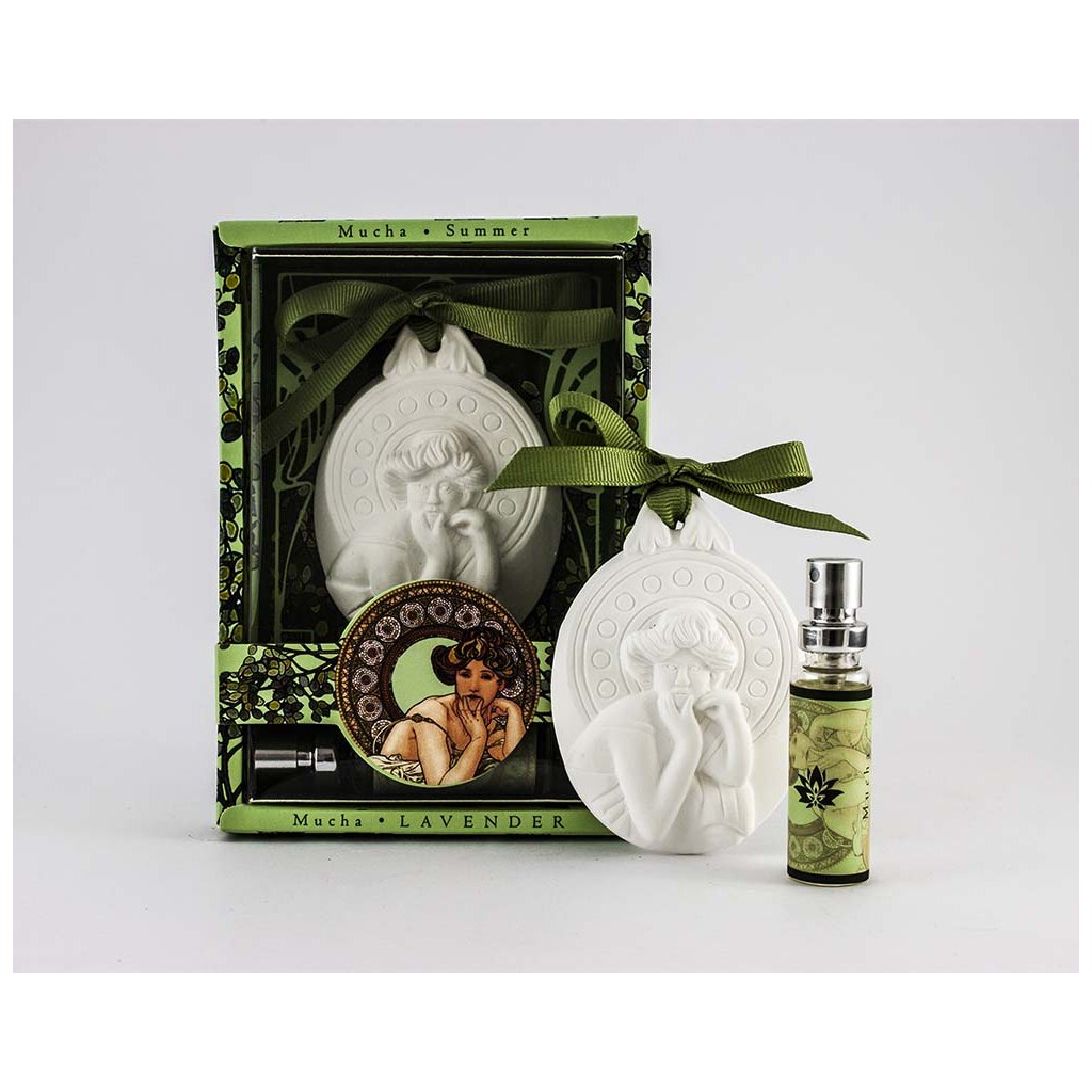 Osviežovač vzduchu - difuzér - Alfons Mucha. Má jemnú a vyváženú levanduľovú vôňu. Súčasťou balenia je i krásny ílový tanierik s motívom diela Alfonsa Muchu, ktorý vôňu postupne uvoľňuje do miestnosti. Celý set je zabalený do darčekovej krabičky so stužkou, ktorá iste nie len milovníkom umenia urobí radosť.