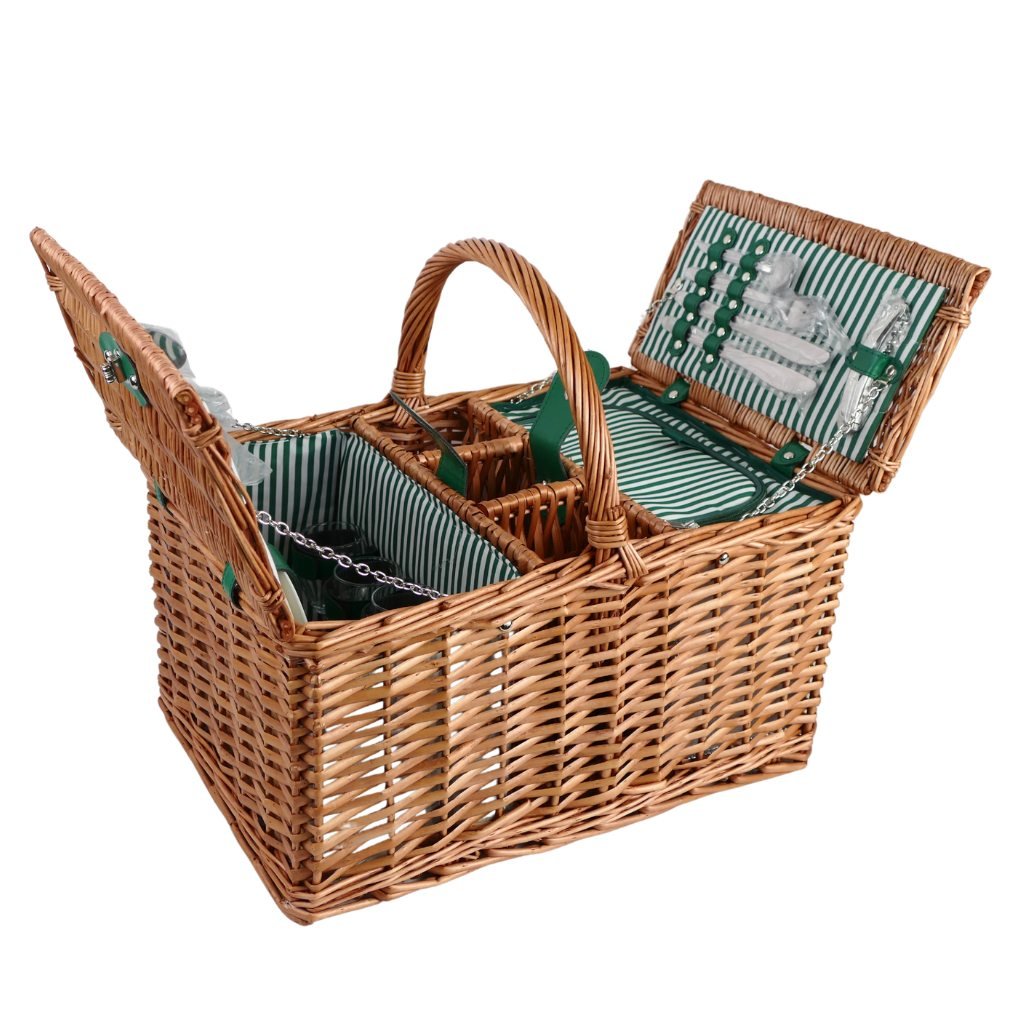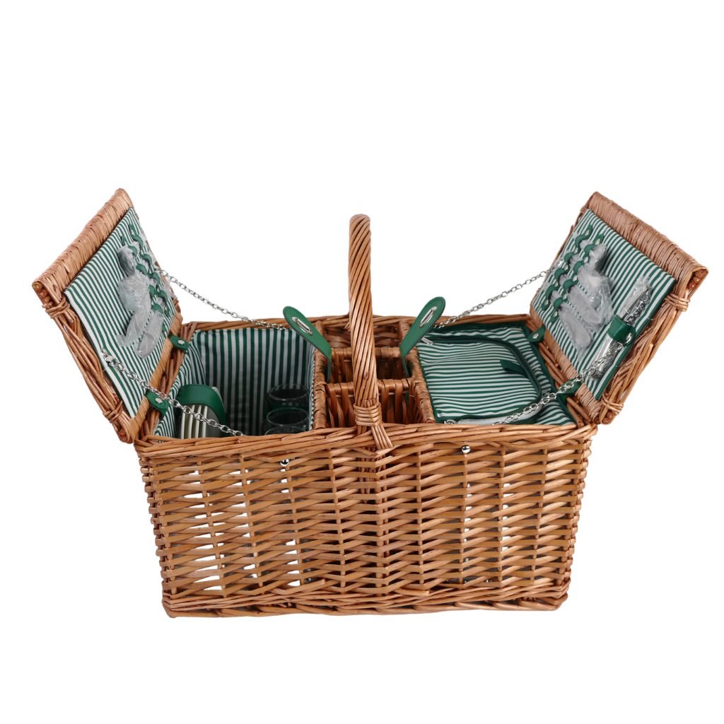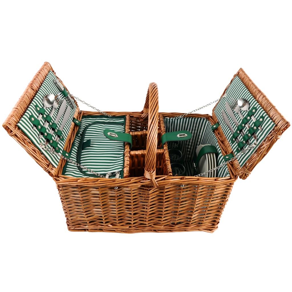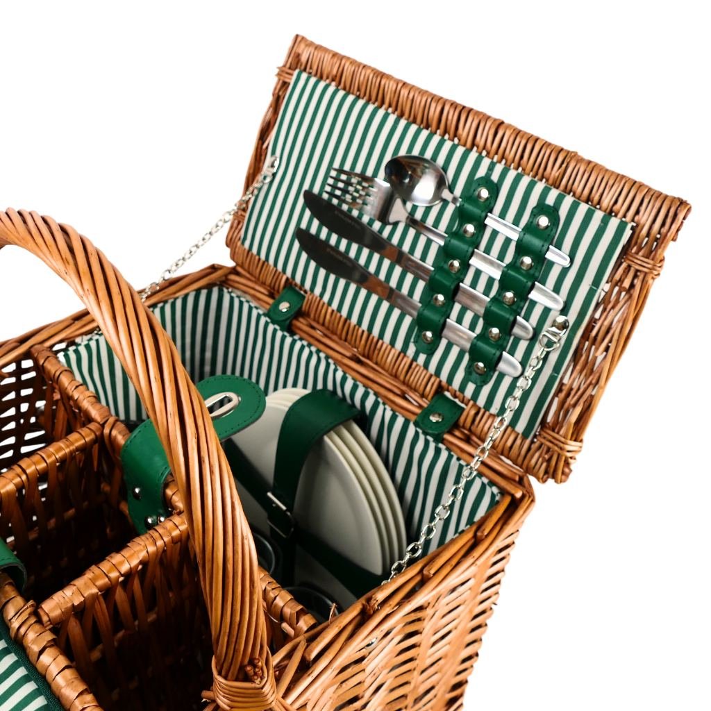 Piknikový kôš pre 4 osoby – zelené pruhy ARÔME HOME