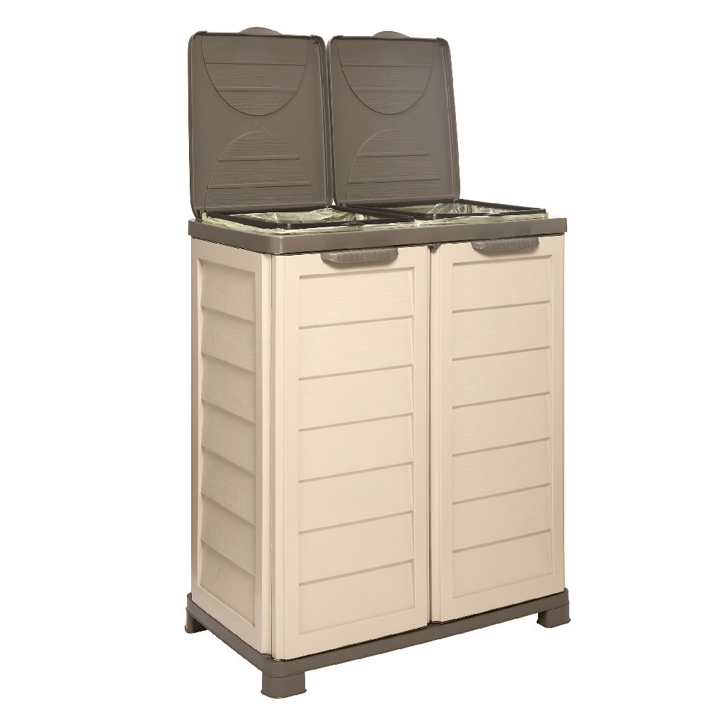 Skrinka na odpadkové vrecia predstavuje praktické a elegantné riešenie pre diskrétny zber odpadu. Vďaka dvom samostatným priehradkám s vekami a integrovanými držiakmi na vrecia umožňuje pohodlne uložiť dve 100-litrové vrecia. Odpad tak zostáva skrytý a priestor pôsobí čisto a upravene.