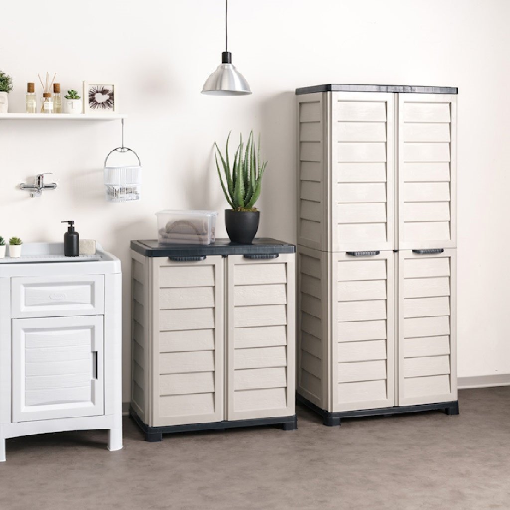 Skrinka je vyrobená vstrekovaním z polypropylénu. Použité živice obsahujú podiel regenerovaných materiálov z prvotriednych granúl, čo zabezpečuje vysokú kvalitu, dlhú životnosť a udržateľnosť bez kompromisov v odolnosti.