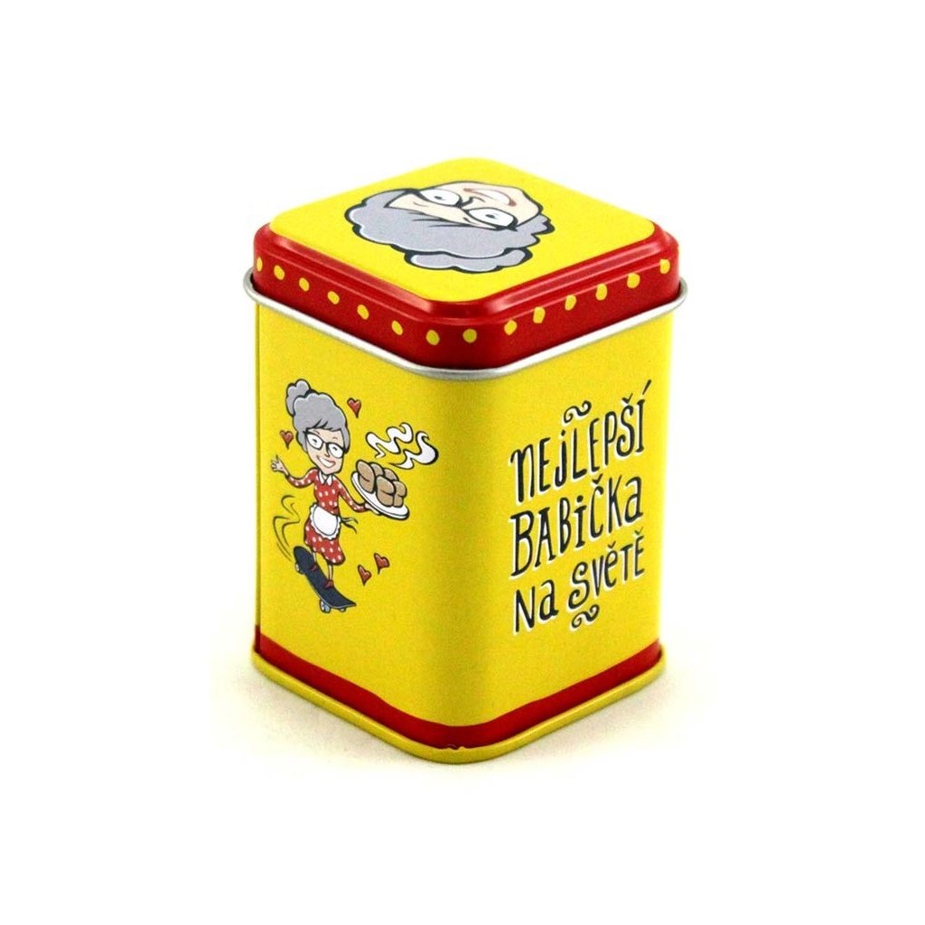 Plechová krabička 4,5x4,5x6,6 cm, nejlepší babička