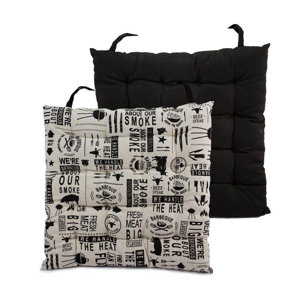 5 cm silný prešívaný podsedák s originálnym motívom grilovania. Podsedák neodporúčame prať, len otierať vlhkou handričkou.