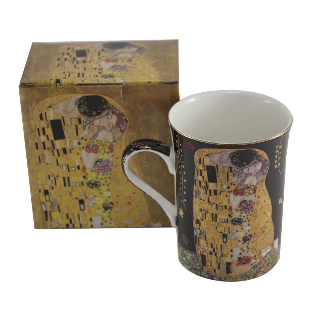 Najslávnejší obraz Bozk rakúskeho maliara Gustava Klimta na porcelánovom hrnčeku s objemom 300 ml. Prepracovaný dizajn krásne zdobí i ostatné produkty z rovnakej kolekcie.