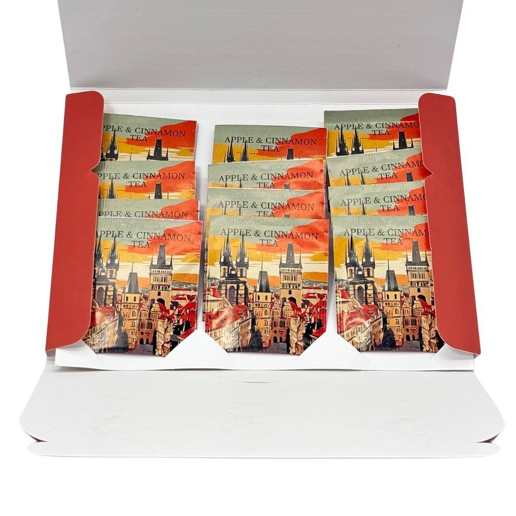 Obálku zdobí krásny motív maľovanej Prahy. Čajové sáčky obsahujú čierny čaj zo Srí Lanky (Cejlon) – vyhlásený svojou kvalitou a lahodnou chuťou.