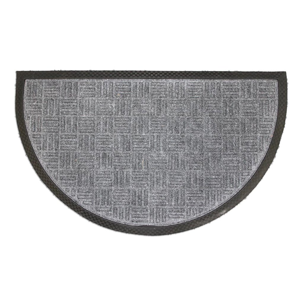 Rohožka v tvare polkruhu na vonkajšie aj vnútorné použitie - čistiaca zóna. Táto pevná kobercová rohožka je zo spodnej strany opatrená protišmykovou vinylovou vrstvou. Vrchná strana má odolný kobercový vlas z polypropylénu v šedej farbe, ktorý veľmi dobre napomáha odstraňovať všetky nečistoty na topánkach.