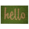 Rohož kokosová + plastová, Hello, zelená, 40x60 cm