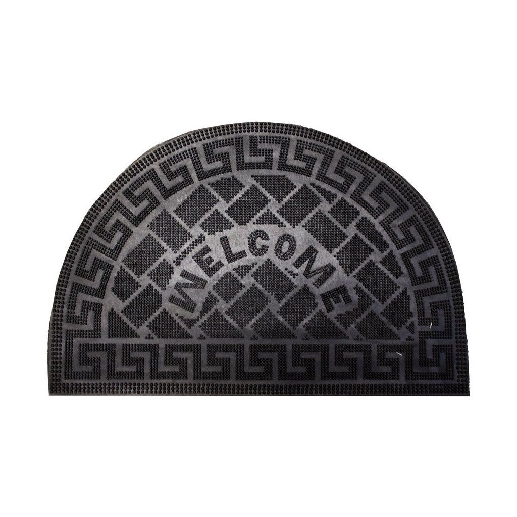Gumová rohož v tvare polkruhu presne zapadá pred prah a víta všetkých nových návštevníkov pekným nápisom WELCOME. Okrem toho táto pekná podložka zachytáva nečistoty z topánok a pomáha udržiavať interiér v poriadku. Gumový podklad zaisťuje najlepšiu fixáciu k podlahe.