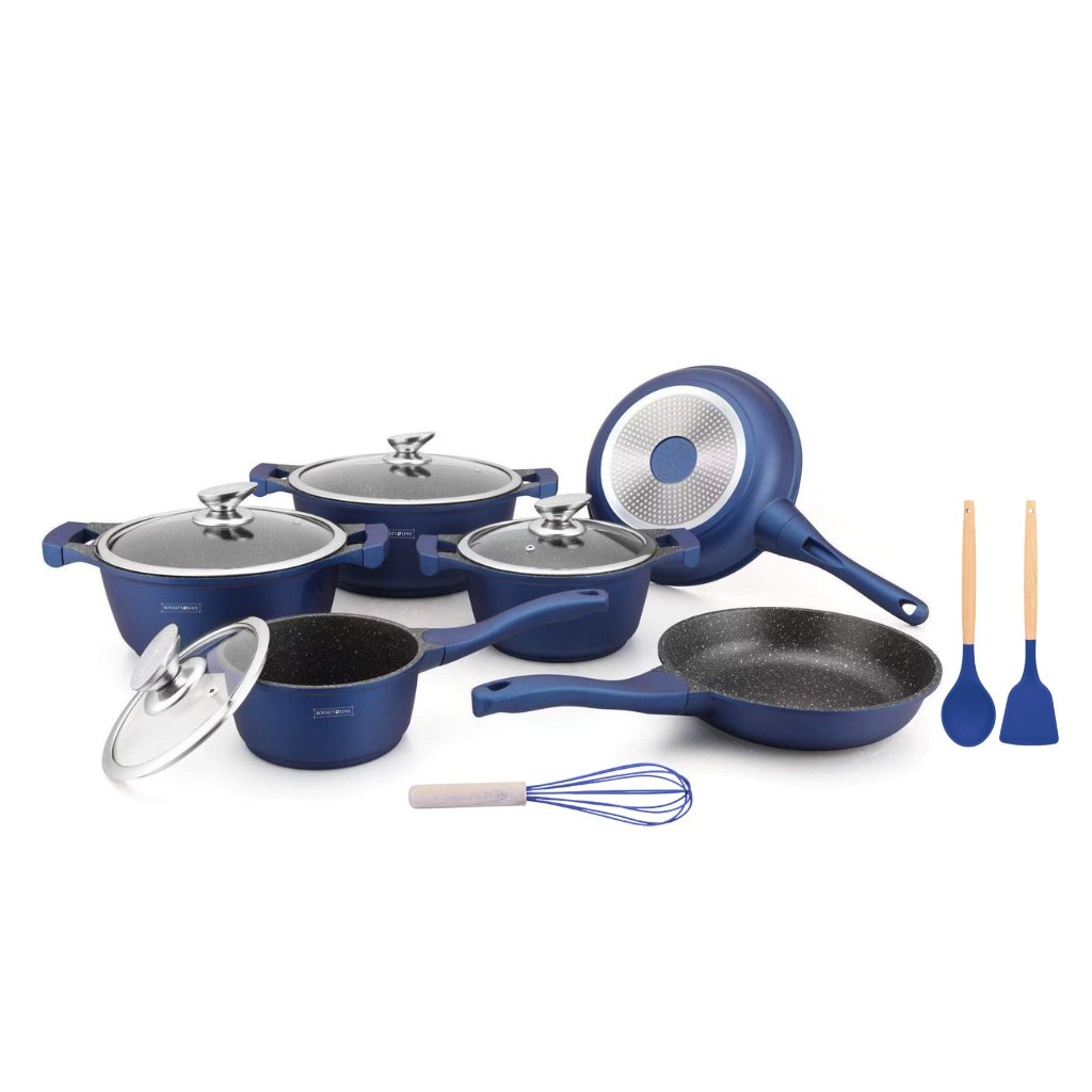 13-dielna súprava Royalty, nepriľnavý mramorový povrch, atraktívna dizajnová modrá farba.