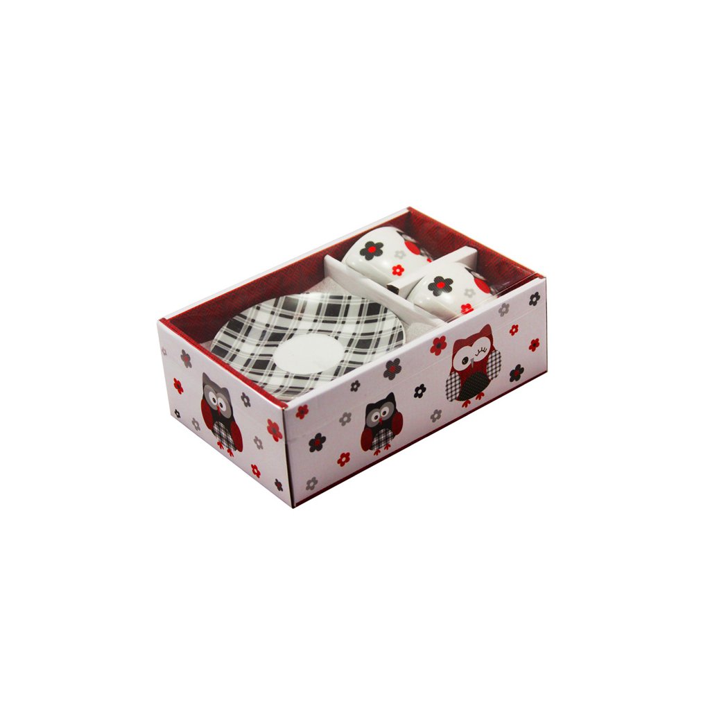 Čajová sada sa skladá z dvoch čajových šálok (250 ml) s podšálkami. Šálky i podšálky sú oživené krásnym motívom s čiernou sovičkou - symbolom múdrosti. Poteší a rozveselí určite každého. Dodávame v krásnom darčekovom balení.