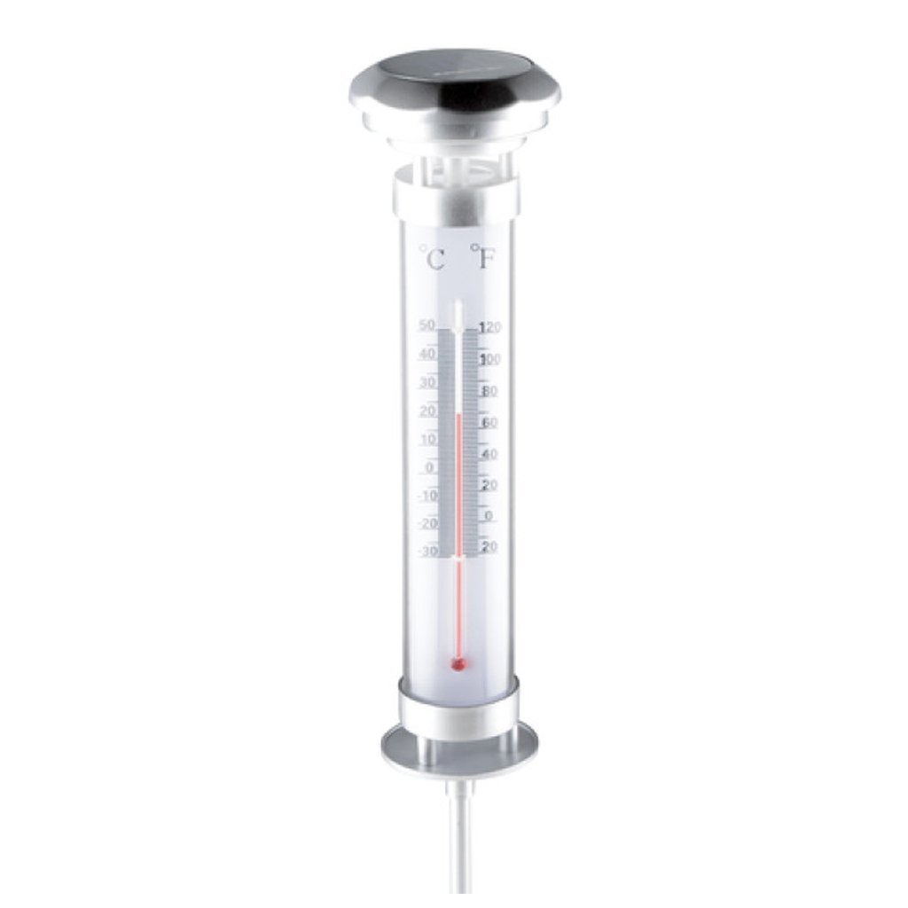 So solárnym záhradným teplomerom Grundig odolným voči poveternostným vplyvom nielen skrášlite svoju záhradu, ale aj v tme zistíte aktuálnu teplotu. Po zotmení sa trvalo rozsvieti a potom sa dá jednoducho vypnúť stlačením tlačidla. Inštalácia je veľmi jednoduchá - pomocou tyče a hrotu sa svietidlo zapichne na vybrané miesto. Svietidlo odporúčame umiestniť na dostatočne slnečné miesto s dobou svietenia aspoň 4 hodiny denne.