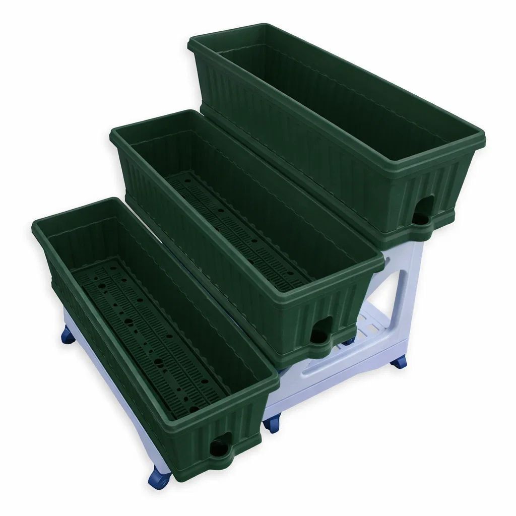 Sada 3 kvetináčov na kvety alebo zeleninu ORTO DI BAMA VR, veľkosť jedného kvetináča 80x26x21, 5 cm, farba zelená.