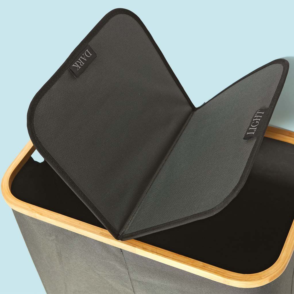 Vďaka dvom praktickým priehradkám môžete špinavú bielizeň ľahko usporiadať podľa farby, látky alebo teploty. Tento kôš na bielizeň má veľkorysý objem 90 litrov, takže vám poskytne dostatok miesta na všetku bielizeň.