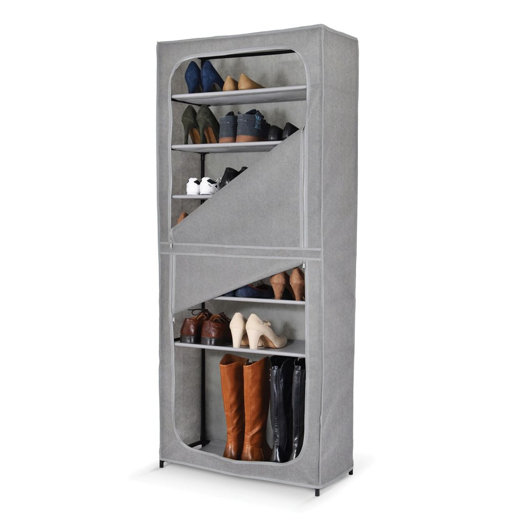 Textilná dvojitá uzatvárateľná skriňa so 7 policami na prehľadné uloženie vecí, ideálne vhodná na topánky. Rozdelená na dve časti pojme veľa párov topánok a vyrieši problém s uskladnením obuvi pre celú rodinu.
