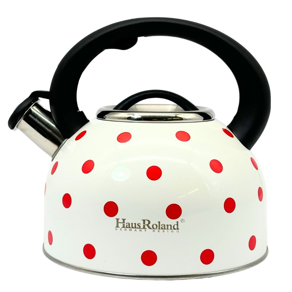 Varná kanvica na vodu Haus Roland 2,5 l, biela s červenými bodkami
