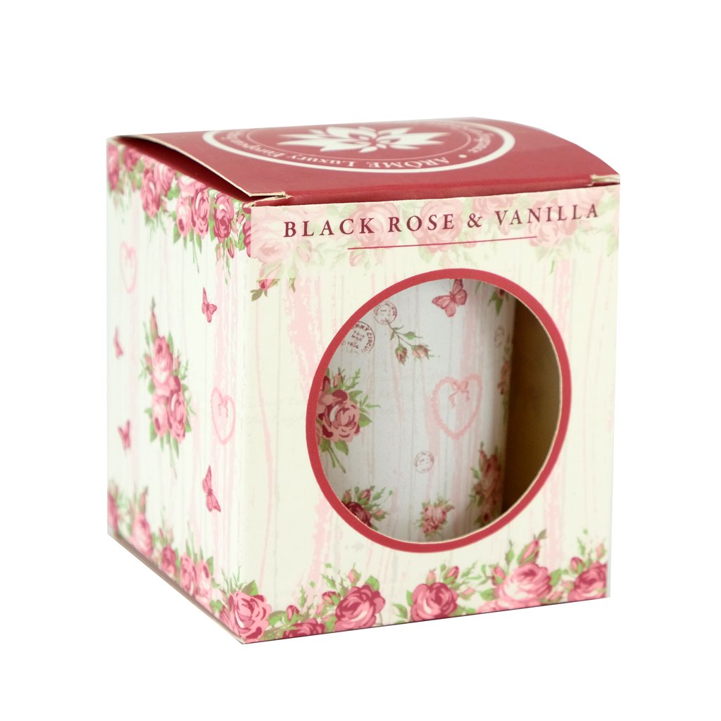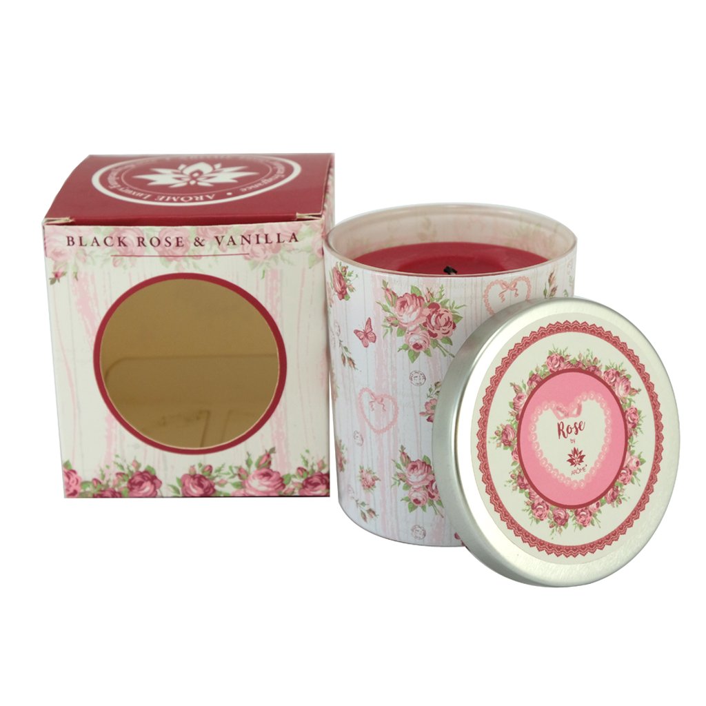 Vonná svíčka v designové skleničce s kovovým víčkem. Svíčka je balená v dárkové krabičce. Nakombinujte s dalšími produkty z kolekce Růže a slaďte tak interiér třeba své kamarádce.