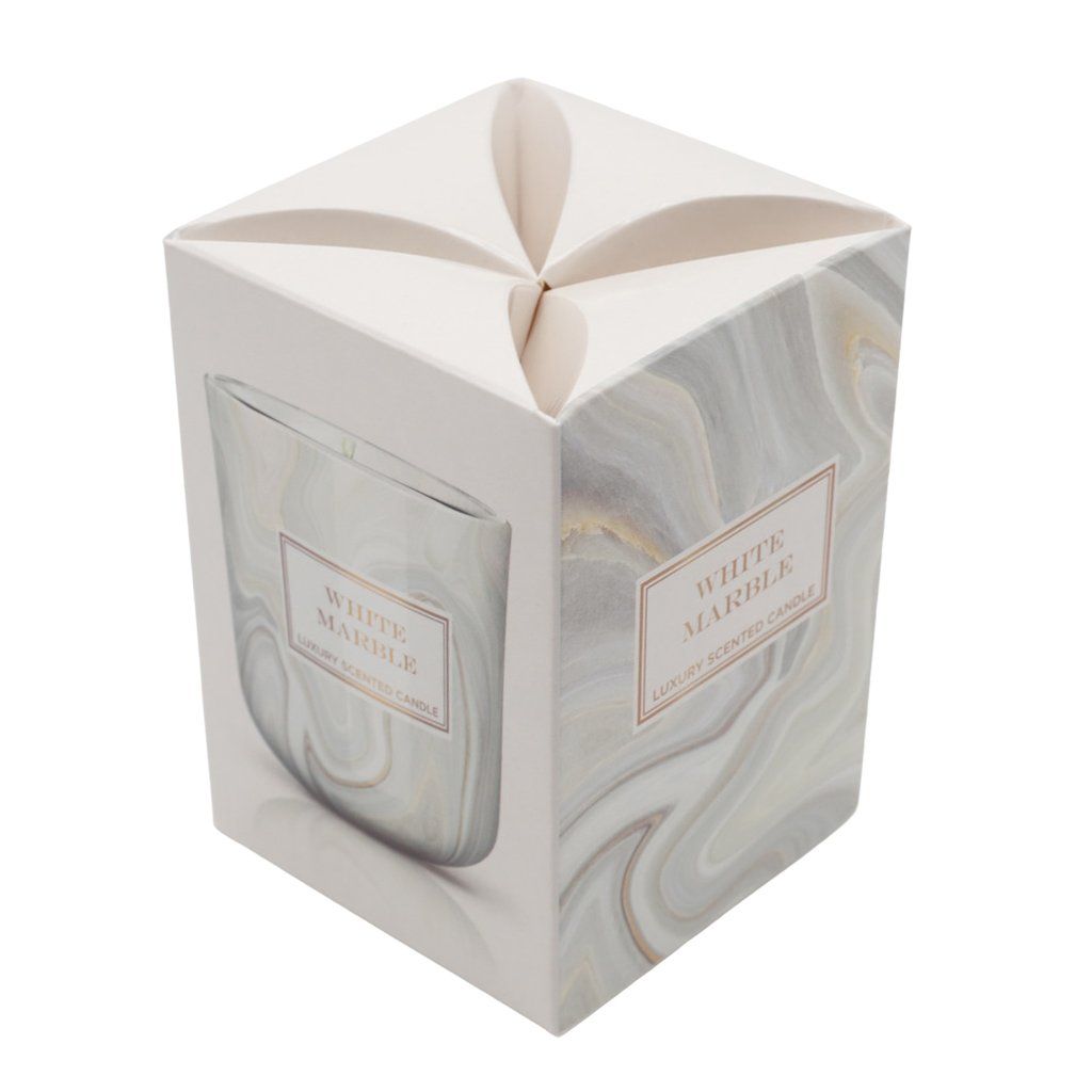 Zlepšite si náladu a rozjasnite svoje okolie vonnou sviečkou v krásnom bielom mramorovom skle. Krásna vôňa do domácnosti uvoľňuje upokojujúcu arómu a dodáva vášmu domovu prirodzený a rafinovaný nádych.