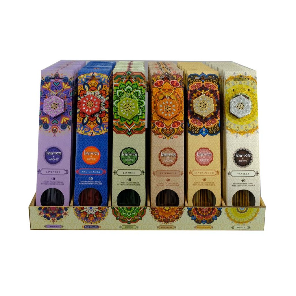40 kusov vonných tyčiniek s vôňou Nag Champa a v balení nájdete aj dekoratívny stojanček. Do stojančeka môžete dať jednu až sedem vonných tyčiniek a určiť si tak intenzitu vône. Vôňa Nag Champa je stvorená pre rituály a harmonizáciu domova.